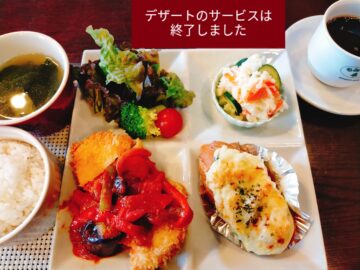 4月14日今週のメニュー 今週のもみの木プレート¥1,000 ・もみの木ハンバーグ ・ポテトとかぼちゃのマヨチーズグラタン ごはん、スープ、ドリンク付き♪ ※デザートのサービスは終了しました (^ー^)ノ 4/17(金)は都合により1時閉店となります