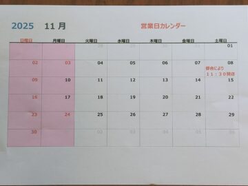 11月8日(土)は都合により11:30開店となります