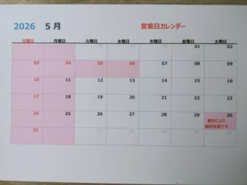 5月30日(土)は都合によりお休みさせて頂きます